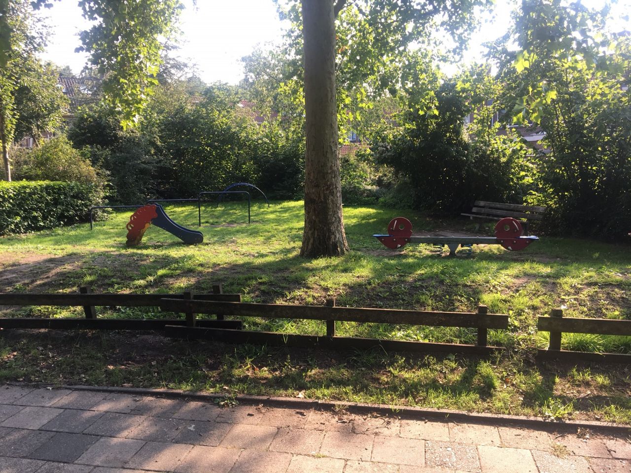 Terug naar mijn buren en hun jongste spruit. De derde. Weer een jongen. Zij wonen in het laatste huis van de straat op zo’n 50 meter van ons. Daarachter een spoorlijn met een onderdoorgang naar een andere buurt. Voor mijn buren is het praktisch en logisch om gebruik te maken van opvang & school in de andere buurt. Die buurt, met smalle straten, kleine huizen uit het eerste deel van de 20e eeuw en nieuwbouw uit de jaren ’80 heeft geen lekkere brede stoepen, nauwelijks groen en om het schoolplein heen staat een hoog hek dat afgesloten kan worden. Wel is er een klein betegeld plein met een kapotte basket en een wiptoestel die zo te zien uit een ander tijdperk komen. Al met al weinig uitnodigend voor de kinderen die daar wonen. Hier is ook vast goed nagedacht over een gezond stedelijk leven.
