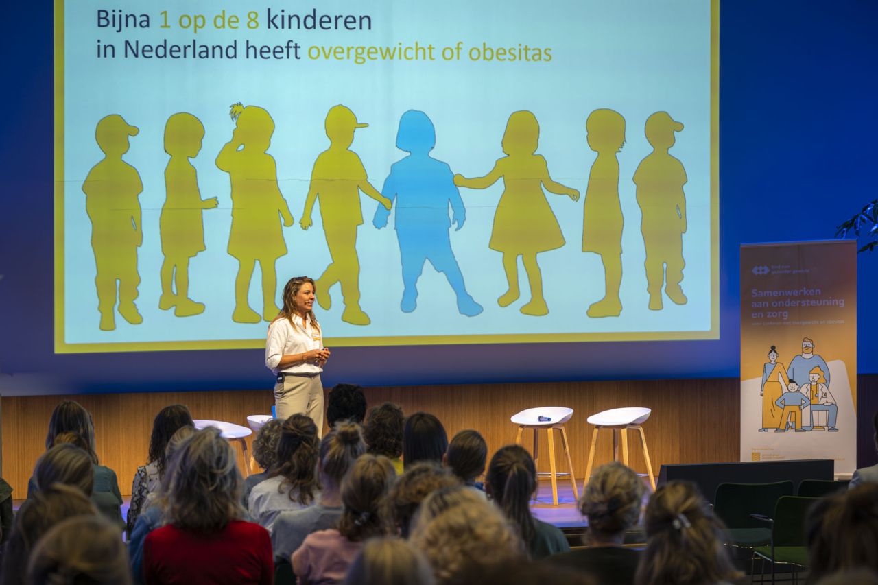 Hoe die professionals vervolgens het gesprek aangaan met het kind en ouders, is een volgende uitdaging. Want voor ouders en kinderen is de drempel om hulp te zoeken hoog, ervaren zorgverleners in de zaal. Een vertrouwensband is daarbij van essentieel belang, vertelt obesitas-arts en projectleider Care for Obesity Bibian van der Voorn. Door zonder vooroordelen het gesprek aan te gaan creëer je vertrouwen én kom je erachter wat er allemaal speelt.